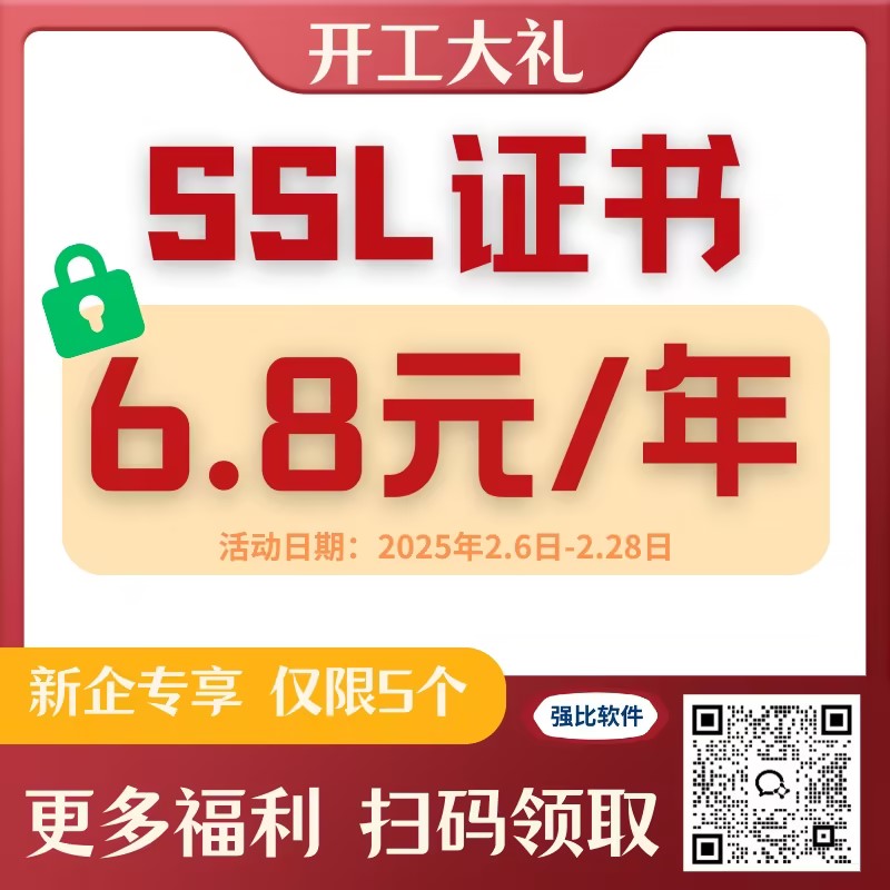 SSL证书1年仅需6块8‼ 6块8‼ 6块8‼
